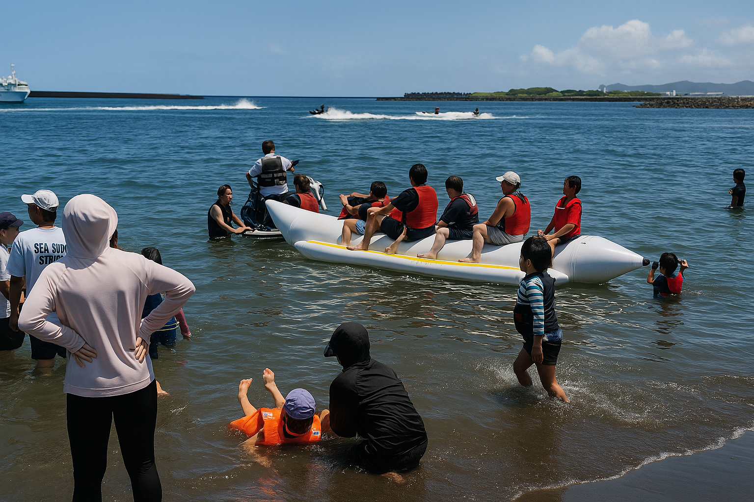 ジェットスキーで安全第一でけん引しますので、小さなお子様でも安心してください。